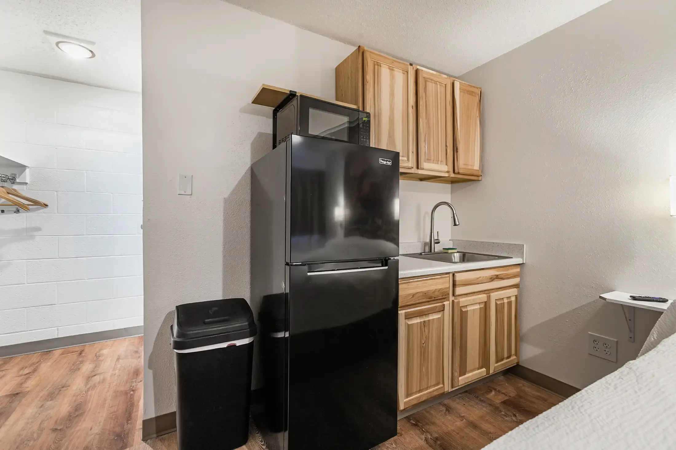 Every room comes equipped with a large fridge and microwave. We also offer kitchenettes.